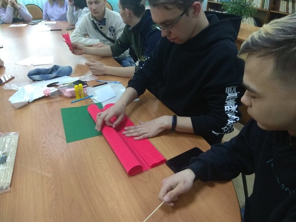 В преддверии празднования 76-ой годовщины Победы в Великой отечественной войне, в рамках Акции «30 дней до Победы» в колледже прошло внеурочное мероприятие «Я – патриот своей Родины». Мероприятие подготовила и провела студентка 3 курса, Саркисян Ана, член добровольческой организации «Волонтерская рота». Студенты ознакомились с деятельностью Волонтерской роты, узнали, что такое Вахта памяти, обсудили понятия «гражданин», «патриот», «патриотизм», прошли тест «Я – патриот своей Родины». В конце мероприятия студенты 1 курса показали небольшой мастер-класс по изготовлению гвоздик из бумаги. Изготовленные бумажные цветы будут переданы в Волонтерскую роту и в праздник Великой Победы подарены ветеранам, труженикам тыла и детям войны.