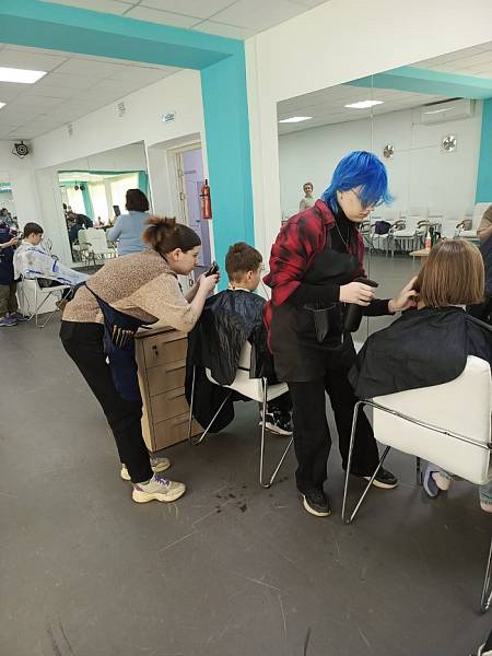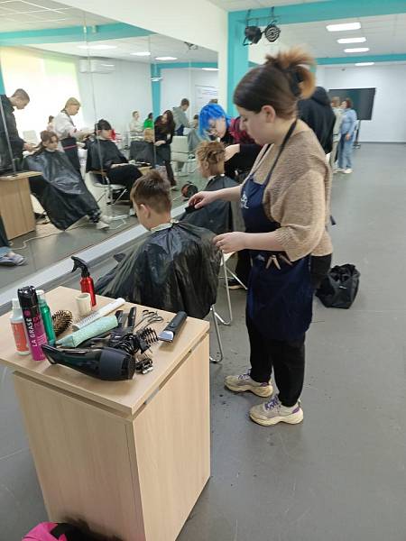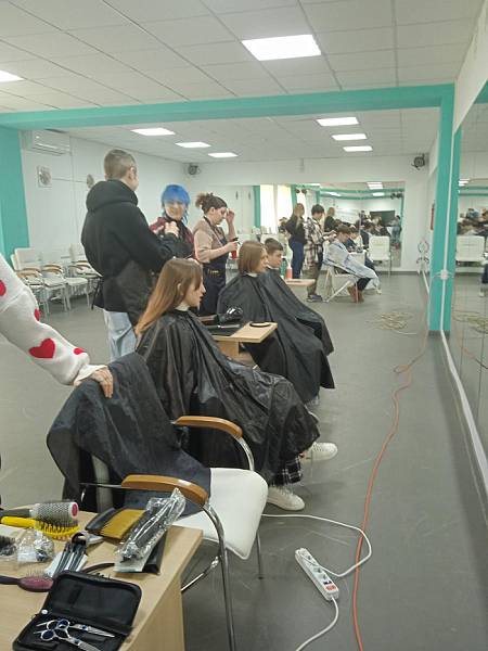 07 мая 2024 года студенты групп 1-3 курсов специальностей Технология парикмахерского искусства и Технологии индустрии красоты приняли участие в благотворительном мероприятии в городе Вышний Волочек, которая проходила в ГБУ ДО ТОЦЮТ «Региональный центр выявления, развития и поддержки талантов и способностей детей и молодежи Тверской области «Орион». Под руководством педагогов колледжа Ельцовой Ирины Васильевны и Ворониной Натальи Сергеевны будущие парикмахеры выполняли парикмахерские услуги детям Белгородской области, которые были вывезены из прифронтовой зоны обстрела ВСУ во время проведения специальной военной операции РФ.