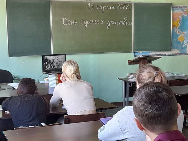 19 апреля 2022 года в колледже прошел День единых действий в память о геноциде советского народа нацистами в годы Великой Отечественной войны. Целью мероприятий в рамках проведения Дня единых действий стало сохранение исторической правды о преступлениях нацистов и их пособников в отношении мирных советских граждан в годы Великой Отечественной войны на оккупированной территории. Преподаватели истории провели в группах 1 и 2 курсов урок-реконструкцию «Без срока давности» с просмотром видеоматериалов, чтобы показать через призму исторической памяти, что действия Красной Армии и единение советского народа в достижении Победы спасли наше государство и его граждан от полного уничтожения.