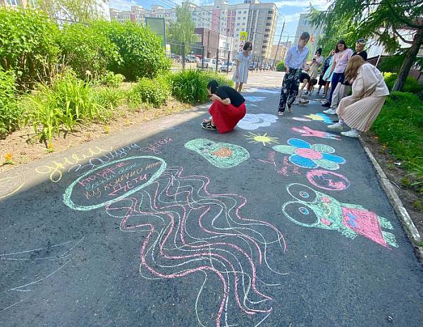 В колледже в честь праздника прошла творческая акция «Планета детства». Студентам выдалась возможность совершить увлекательный полет на планету детства и украсить цветными рисунками площадку перед колледжем.