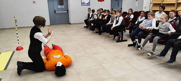 8 октября 2025 г. сотрудники Центра по профилактике детского дорожно-транспортного травматизма провели практические занятия с учениками МБОУ УСОШ №2 им. Сергея Ступакова Тверской области по безопасности дорожного движения и первой помощи. Ребята повторили основной алгоритм действий при переходе проезжей части дороги, после чего каждый смог лично попрактиковаться в оказании первой помощи на роботе-тренажере «Александр».