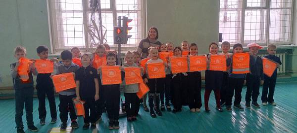 Каждый ученик получил в подарок световозвращающие мешки, жилеты и рабочие тетради с полезными упражнениями.