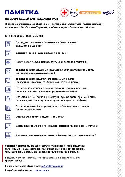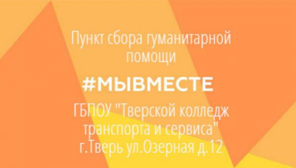 9 марта 2022 года в библиотеке колледжа начинает работу пункт сбора гуманитарной помощи для граждан из Донецкой и Луганской Народных Республик. Собранная гуманитарная помощь будет передана в региональный штаб #МЫВМЕСТЕ для дальнейшего распределения по пунктам временного размещения и формирования гуманитарных наборов. В пункте сбора принимаются вещи и предметы, указанные в памятке.