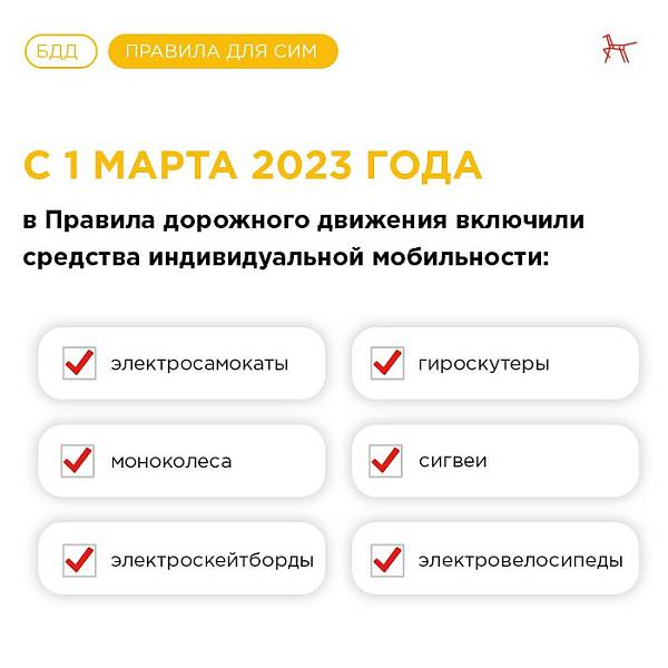 С 1 марта 2023 года вступили в действие изменения в Правила дорожного движения. Теперь лица, использующие СИМ (средства индивидуальной мобильности), стали полноценными участниками дорожного движения. Что изменилось для людей с СИМ? Читаем в памятках!