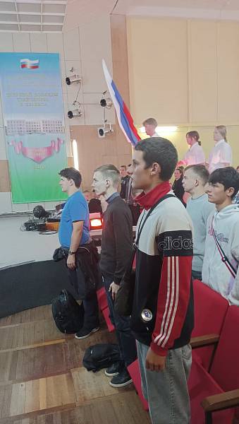 Занятия начались с выноса флага РФ и исполнения государственного гимна.