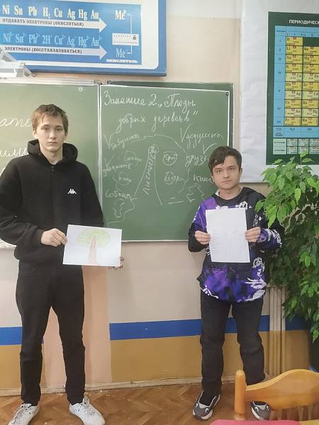 Задачами четвертого и пятого занятия «Цели и ценности» стало создание ситуации открытого общения и принятия; актуализация переживаний обучающихся; создание персонального «дерева ценностей».