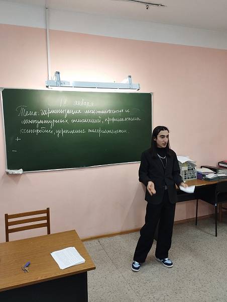 В течение января в колледже проходят тематические занятия «Сила в толерантности», направленные на гармонизацию межэтнических и межкультурных отношений, профилактику ксенофобии и укрепление толерантности, с целью профилактики экстремизма в молодежной среде.