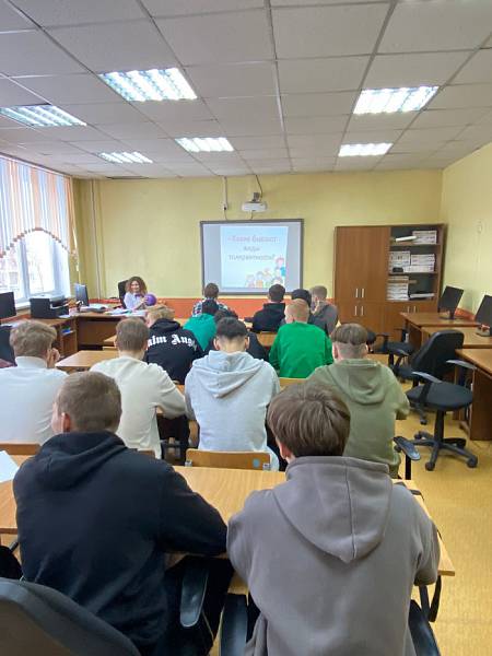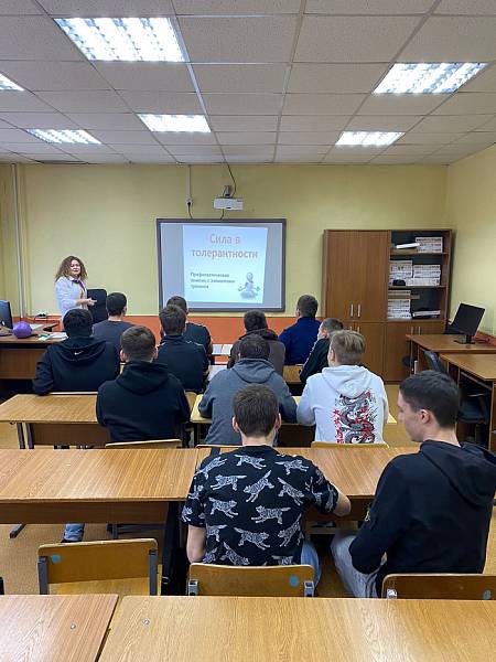 Социальный педагог и педагог-психолог колледжа знакомят студентов с основными чертами толерантной личности, предлагают оценить степень своей толерантности и развить способность адекватно и полно познавать себя и других людей. В ходе занятий у обучающихся развиваются способности к эмпатии и коммуникативные навыки в процессе группового взаимодействия.