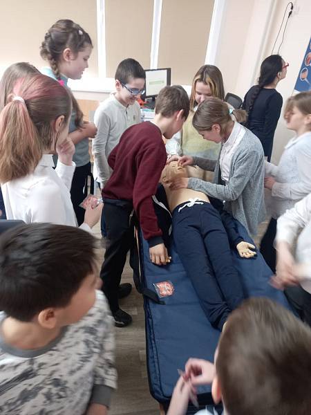 8 апреля 2022 г. на базе центра по профилактике детского дорожно-транспортного травматизма сотрудники провели занятие для учащихся МОУ СОШ №33. Во время урока учащиеся освоили приемы по оказанию первой медицинской помощи на оборудовании Центра.