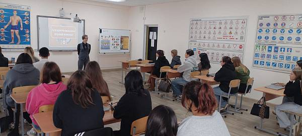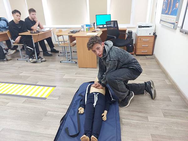 16 сентября 2025 г. сотрудники Центра по профилактике детского дорожно-транспортного травматизма провели практические занятия со студентами колледжа по безопасности дорожного движения и первой помощи. Ребята повторили основной алгоритм действий при переходе проезжей части дороги, после чего каждый смог лично попрактиковаться в оказании первой помощи на роботе-тренажере «Гриша».