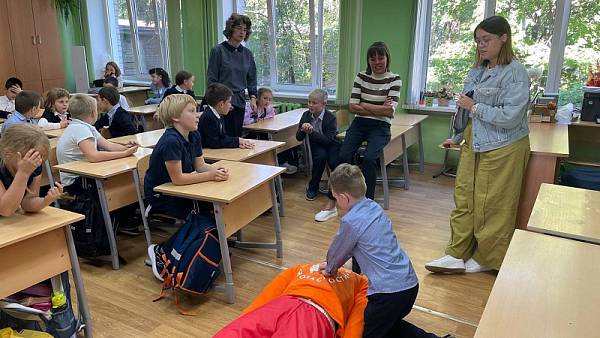 Ребята усвоили основной алгоритм действий при переходе проезжей части дороги, после чего каждый смог лично попрактиковаться в оказании первой помощи на роботе-тренажере «Александр».