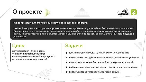 В 2023 году Российским обществом «Знание» совместно с Минпросвещения России запущена Всероссийская акция «Ученые – в школы» для молодых ученых и обучающихся общеобразовательных организаций. Акция направлена на поиск и отбор талантливых лекторов, в рамках которой любой желающий молодой научный деятель может попробовать свои силы в качестве лектора, совершенствовать навыки публичных выступлений, найти свою аудиторию.