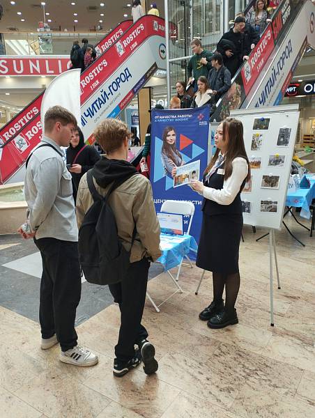 18 апреля 2025 года на территории торгового центра «РИО» студенты нашего колледжа приняли участие в региональном этапе Всероссийской ярмарки трудоустройства «Работа России. Время возможностей». Студенты специальности «Стилистика и искусство визажа» продемонстрировали мастер - класс по выполнению элементов фейс- арта и боди- арта с индивидуальным выбором рисунка для участников ярмарки. Мастер - класс посетили более 50 школьников города Твери.